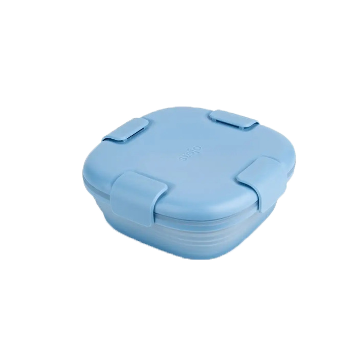 Складной и многоразовый. Крышка с фиксаторами закрывается герметично, поэтому ваш обед не вытечет из ланч-бокса. Удобно брать с собой готовое блюдо или просто перекусы. Подходит для использования в микроволновой печи, поэтому вам не составит труда разогреть ваш обед, не перекладывая его в тарелку. А после того, как поели, вы легко сложите его. В сложенном виде он занимает мало места и его можно положить в сумочку, рюкзак.